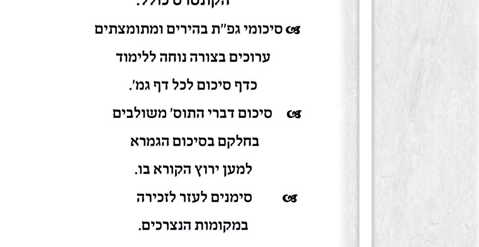סיכומים בהירים ומתומצתים על מסכת סוכה ערוכים בצורה המועילה מאוד לזכרון הדף ולקבלת בהירות במבנה הסוגיא כולל שאלות לשינון וחזרה המקבילות לסיכום על הדף הקונטרס יצא לאור במהדורת סיכום גפ"ת ובמהדורת סיכום גמ' ורש"י מומלץ מאוד לעומדים בכור המבחן